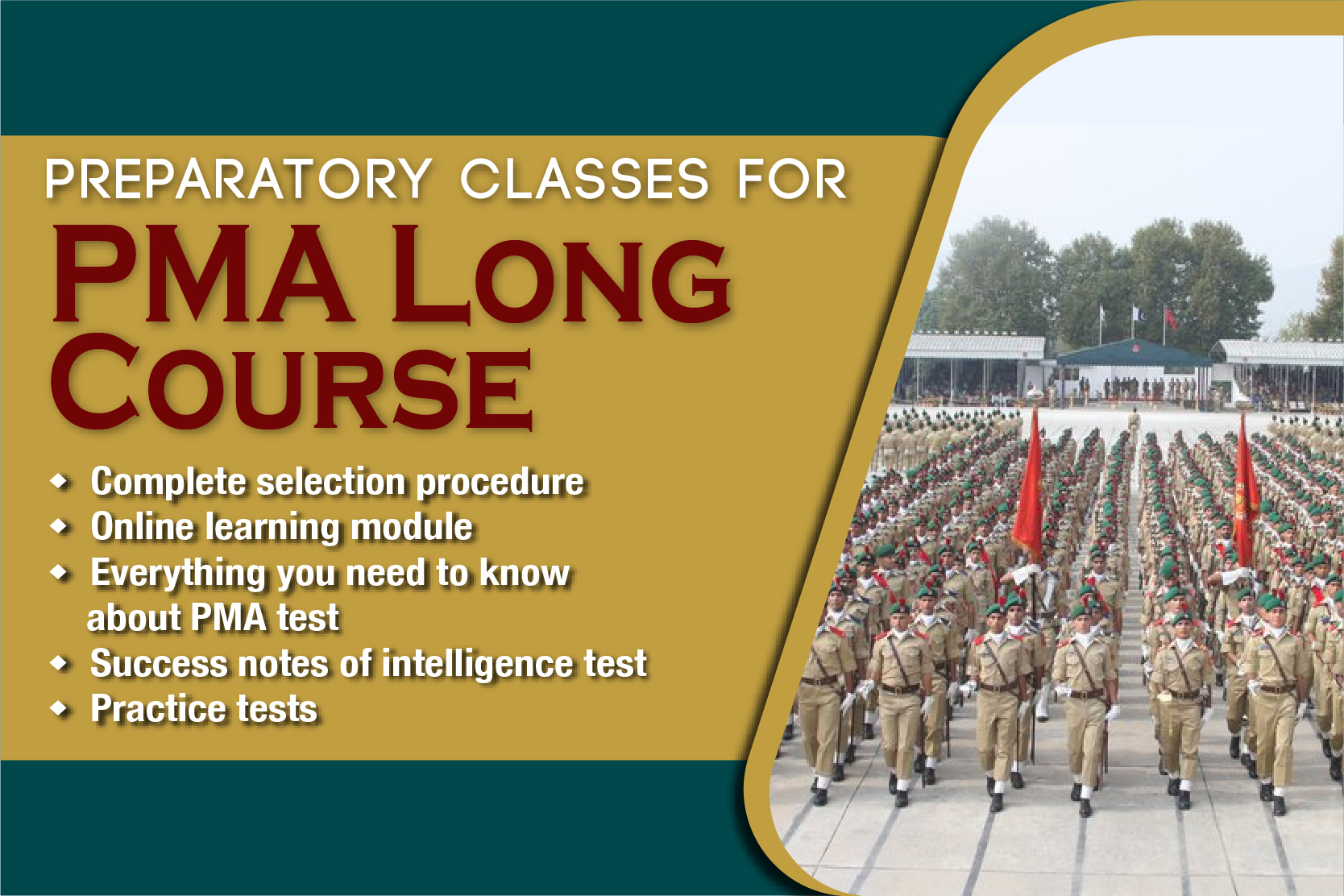 A specialized program designed to prepare students for the rigorous entry requirements of the Pakistan Military Academy (PMA). This program focuses on academic excellence, physical conditioning, and the development of leadership qualities needed to succeed in the PMA selection process.